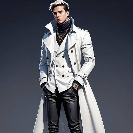 Stylish Man in Green Turtleneck and Teal Overcoat