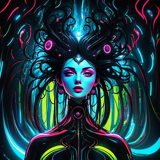 Futuristic Cybernetic Woman with Neon Cables and Robotic Enhancements