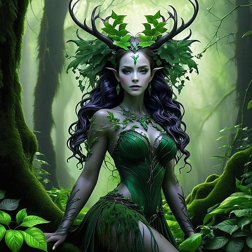 Mystical Woodland Spirit with Antlers
