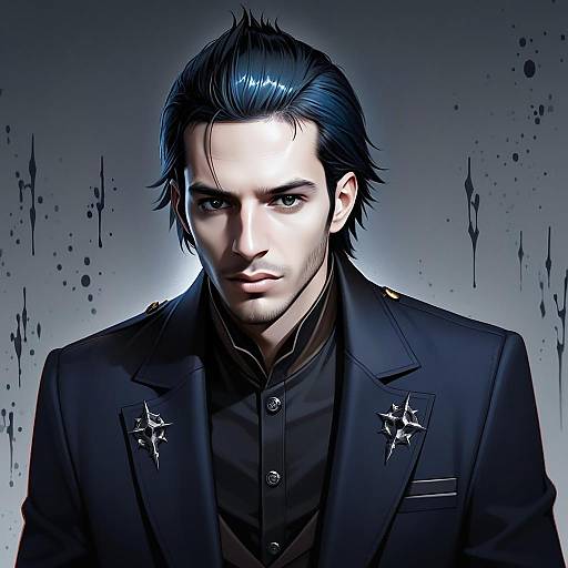 Digital Portrait of Confident Man with Blue Hair