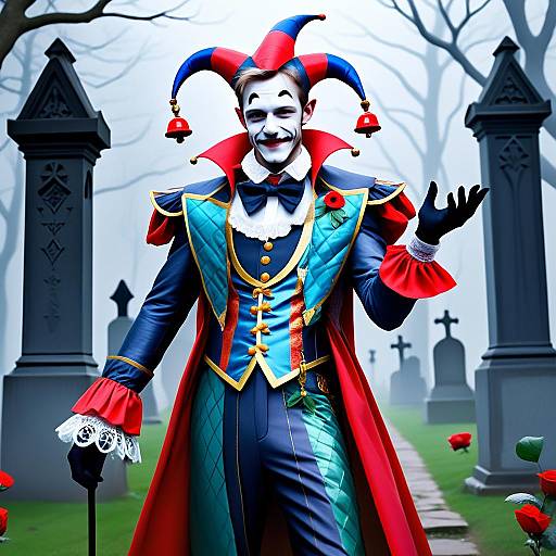 Mysterious Figure in Misty Graveyard