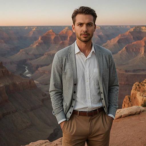 Stylish Man in Blue Shirt at Arizona Grand Canyon