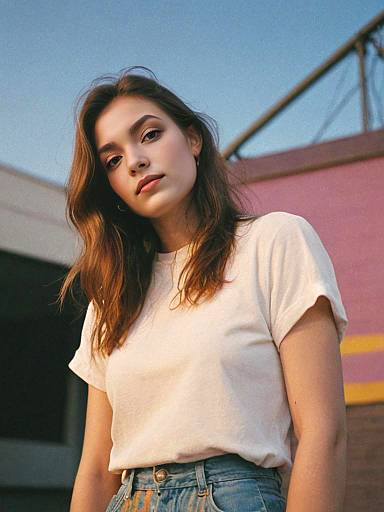 Woman with Flowing Hair in Atmospheric Urban Setting