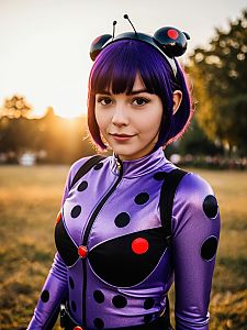 Woman Wearing Miraculous Ladybug Purple Costume Outdoors at Golden Hour