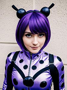 Woman in Purple Miraculous Ladybug Costume Photorealistic Studio Portrait