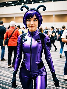 Woman in Miraculous Ladybug Purple Cosplay Costume at Convention