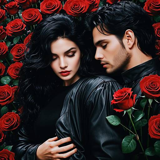 Romantic Couple in Red Roses