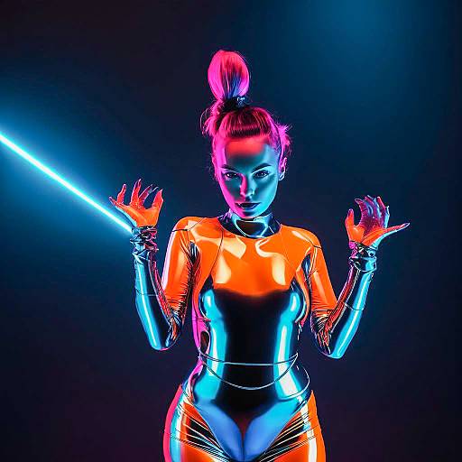 Futuristic Woman in Neon Cyberpunk Outfit