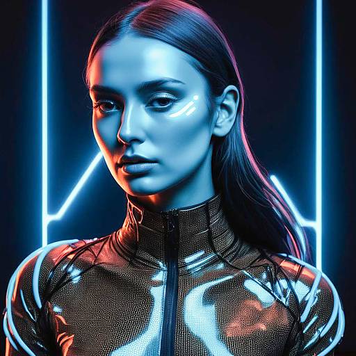 Woman in Futuristic Outfit with Glowing Accents