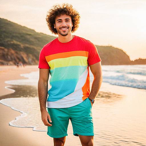 Confident Man in Stylish T-Shirt and Shorts
