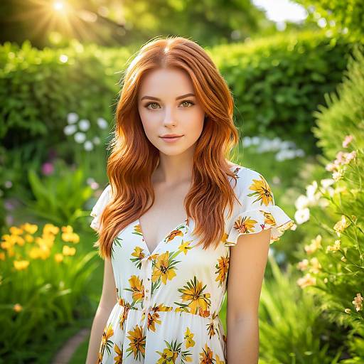 Cheerful young woman with voluminous curls in a sunlit outdoor setting