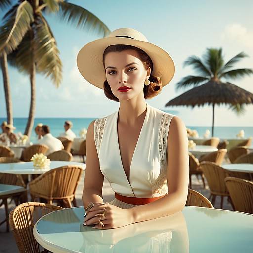 Confident Woman in Firebrick Swimsuit Enjoying Cocktail at Resort