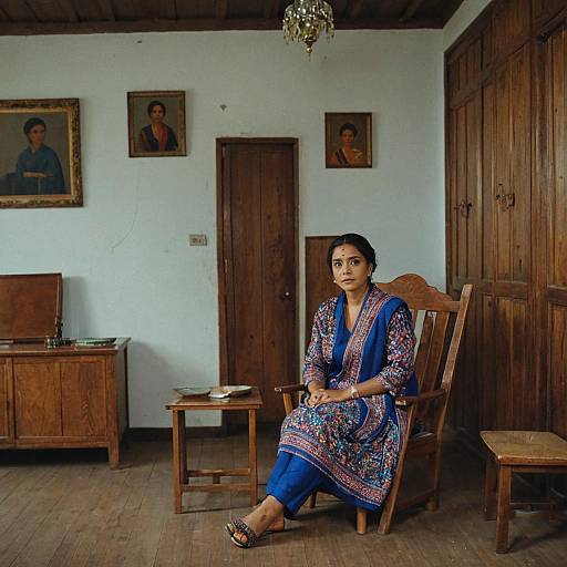 Woman in Floral Blue Crop Top and Skirt Indoors