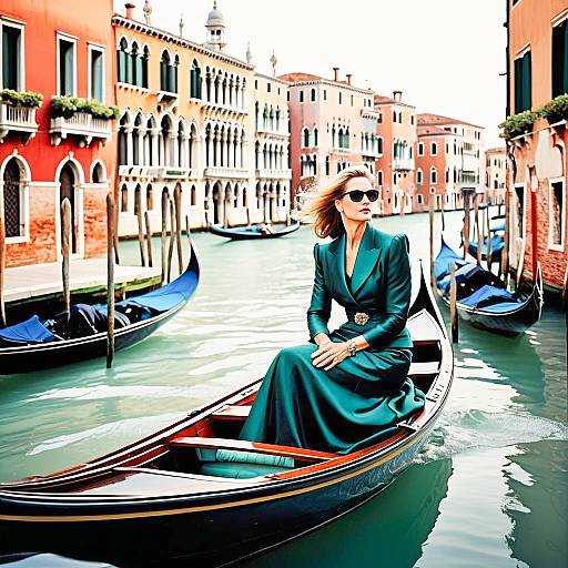 Elegant Woman in Emerald Green Outfit on Plush Bed