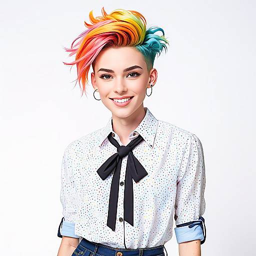 Vibrant Portrait of a Young Woman with Rainbow Hair
