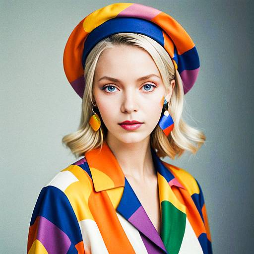 Vibrant Portrait of a Woman in Colorful Geometric Fashion