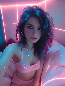 Confident Young Woman with Rainbow Hair in Urban Skate Park