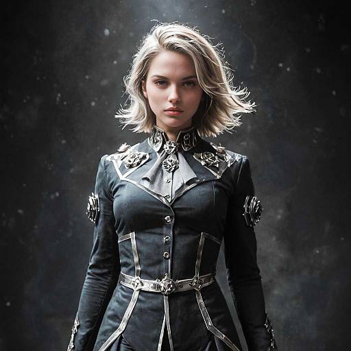 Gothic Vintage Style Woman in Black Dress with Bob Haircut