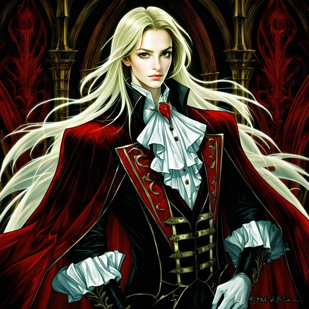 Alucard Castlevania Anime Style Portrait with Gothic Victorian Attire