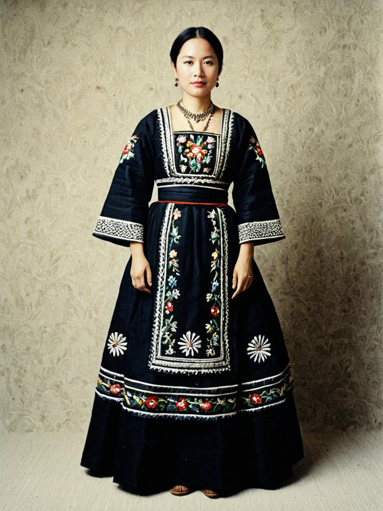 Woman in Traditional Embroidered Gown Full Body Portrait