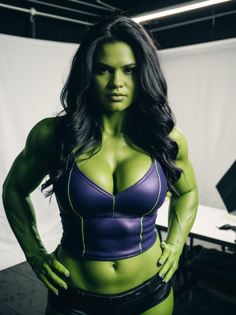 Photorealistic She-Hulk Costume Cosplay Studio Portrait of Woman