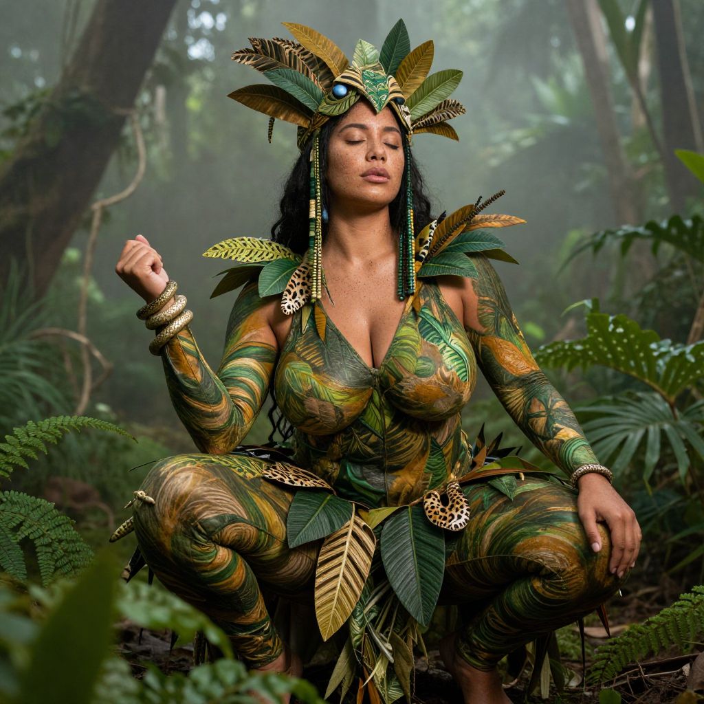Woman in Nature-Inspired Tribal Costume in Forest