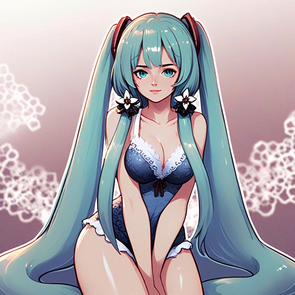Hachune Miku Anime Style Digital Illustration in Blue Lingerie
