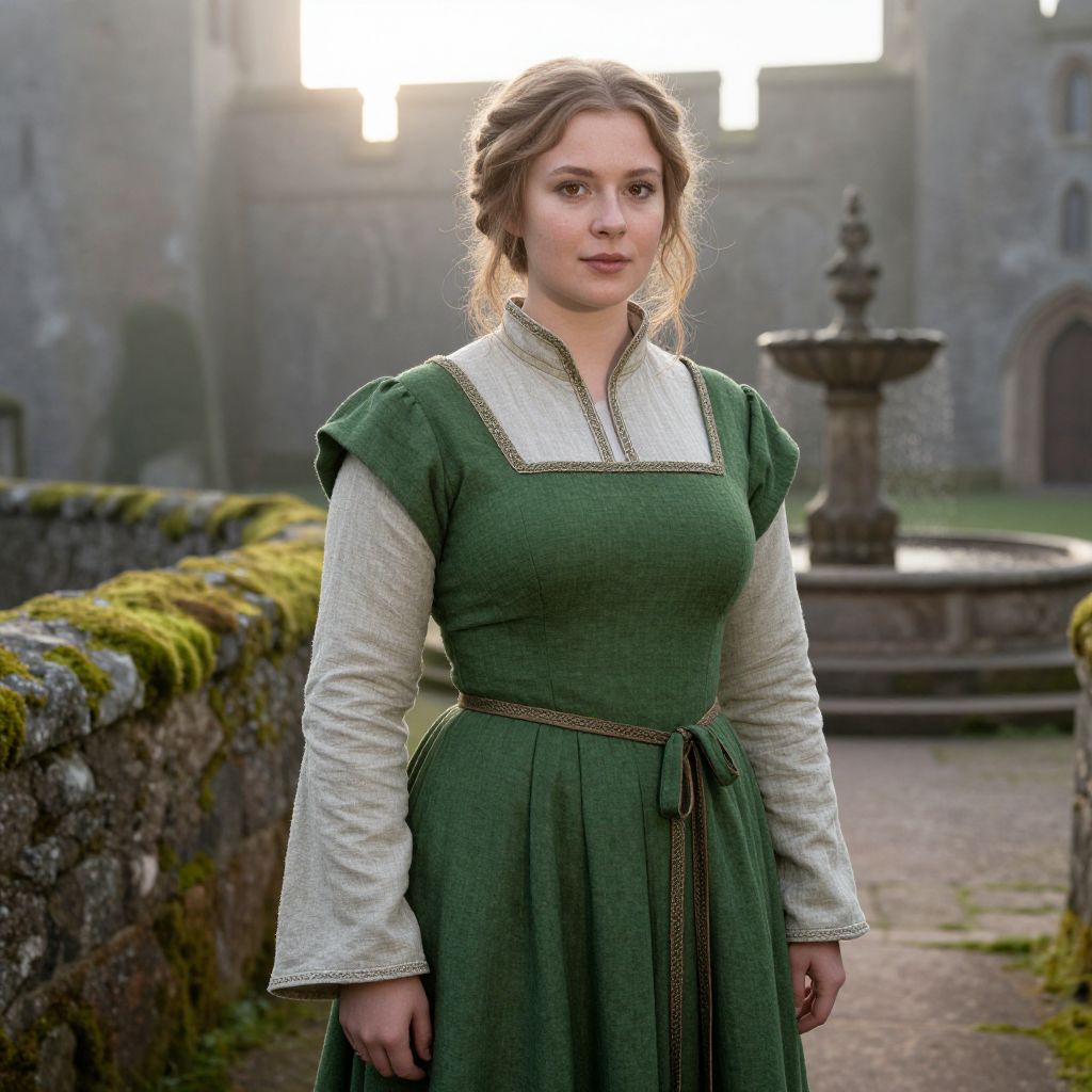 Medieval Woman in Green Dress at Historic Castle
