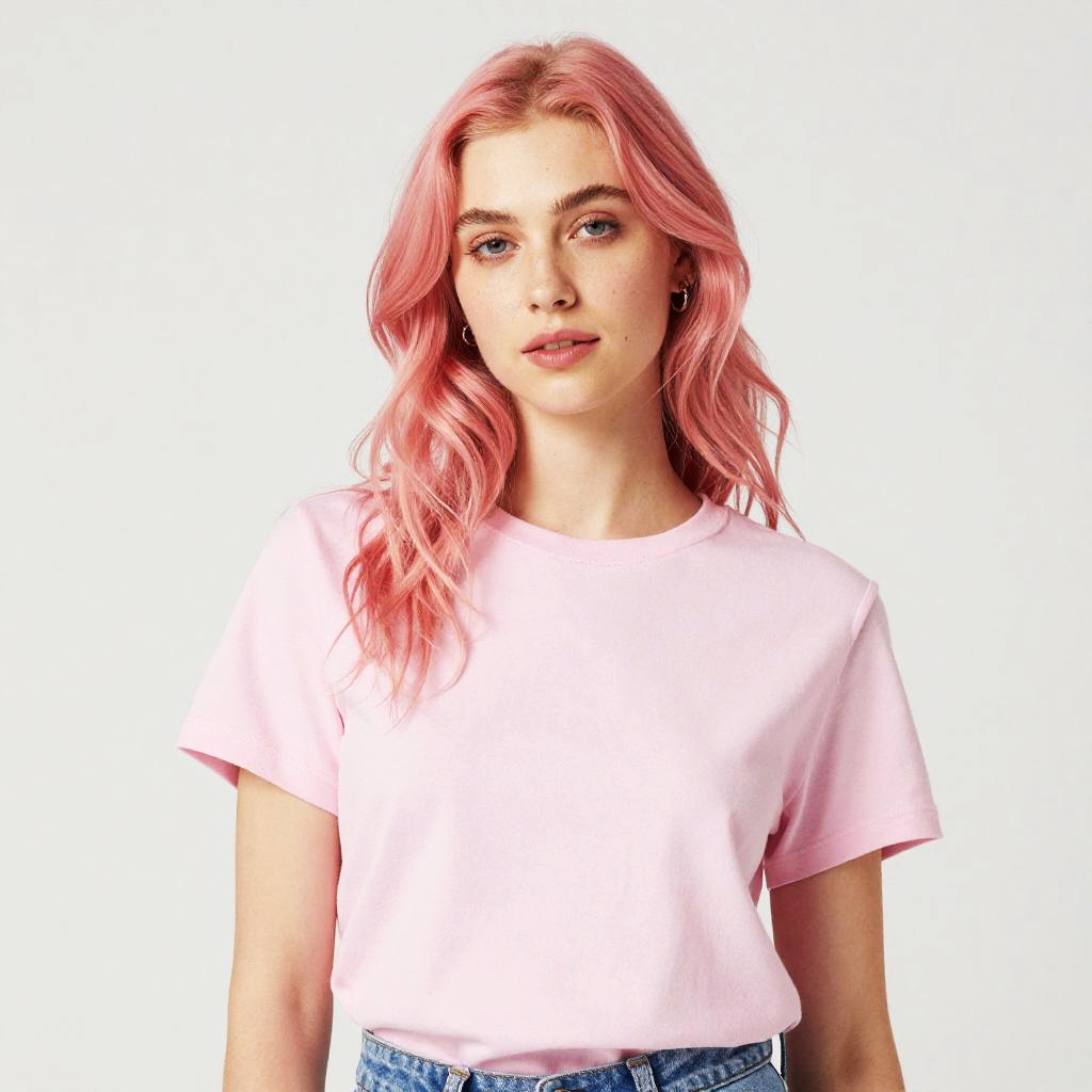 Pastel Woman with Pink Hair Wearing Pink T-Shirt
