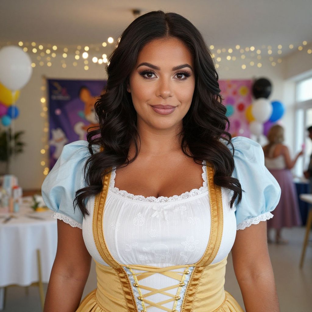 Woman in Traditional Dirndl Dress at Festive Indoor Event