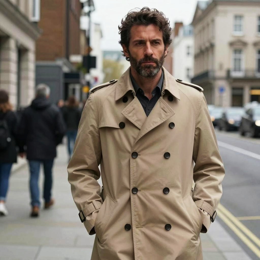 Man Wearing Classic Beige Trench Coat Walking in City Street