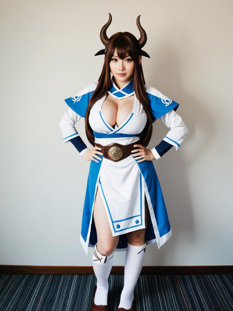 Mugino Shizuri Cosplay Woman in Detailed Blue and White Outfit with Horns