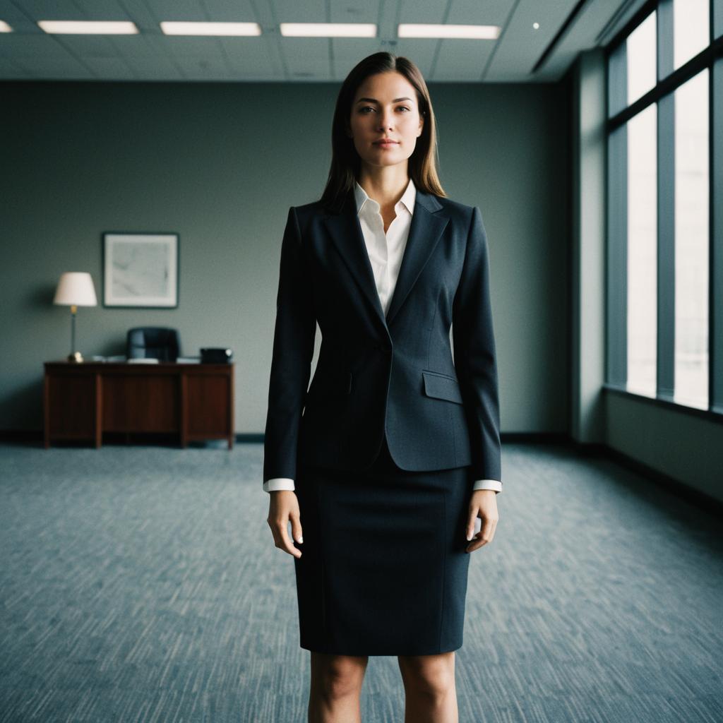 Professional Woman in Formal Business Suit Standing in Modern Office