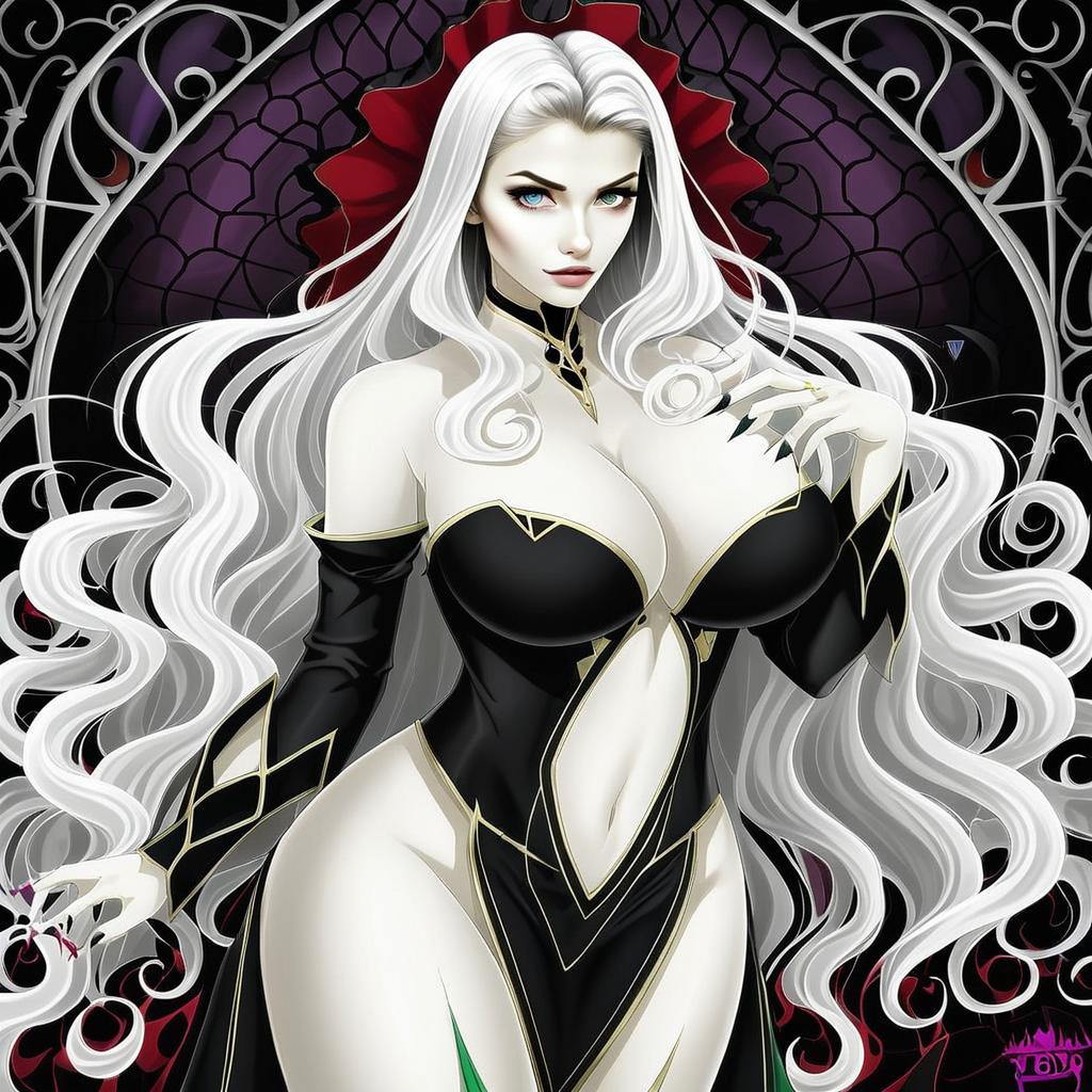 Carmilla Anime Artwork Featuring Gothic Woman with Long White Hair
