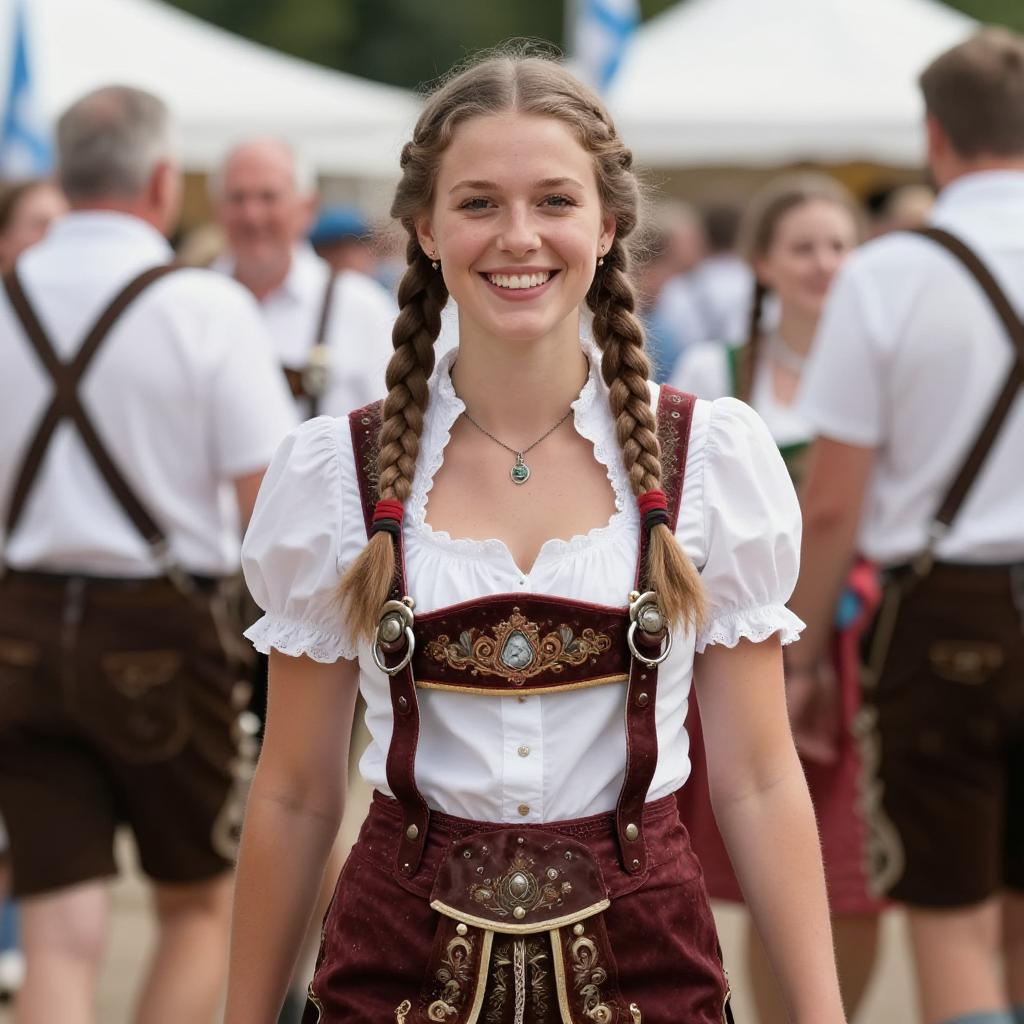 Young Woman in Traditional Bavarian Dirndl at Festival