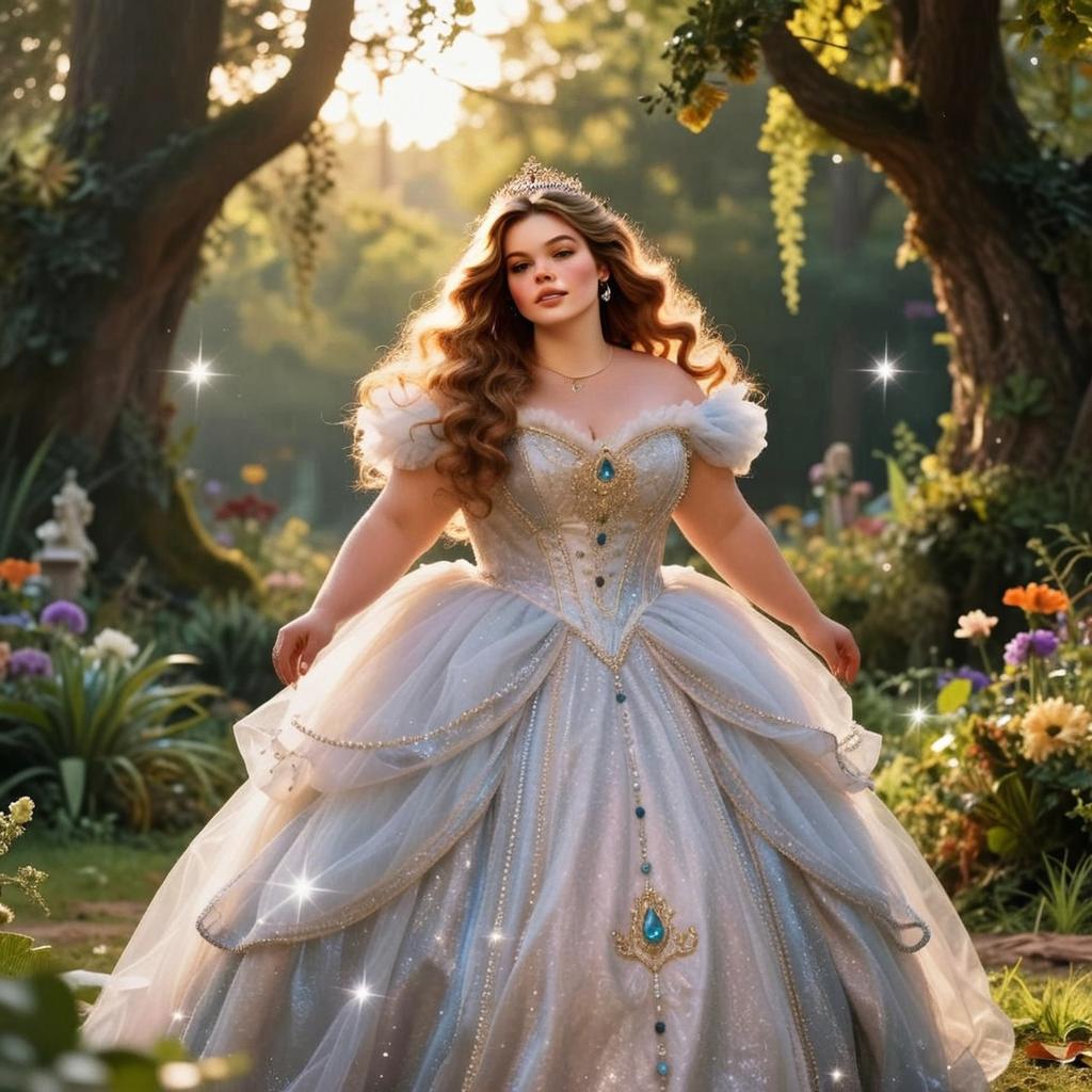 Elegant Princess in Enchanted Garden Wearing Sparkling Ball Gown