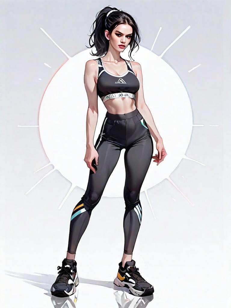 Realistic Digital Illustration of Athletic Woman in Sportswear Full Body Shot