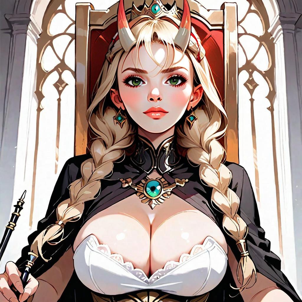Fantasy Anime Woman with Horns on Ornate Throne Digital Illustration