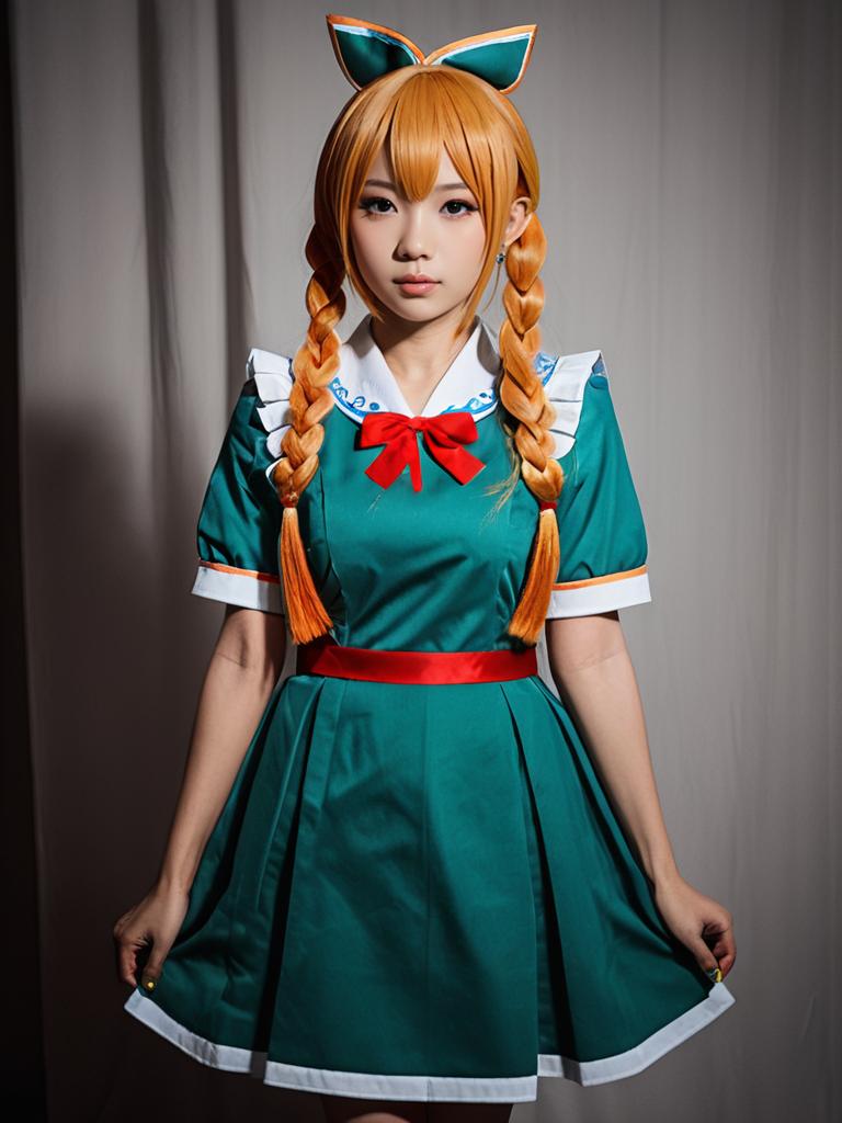 Sexy Cosplay Woman as Yayoi Takatsuki in Green Anime Dress