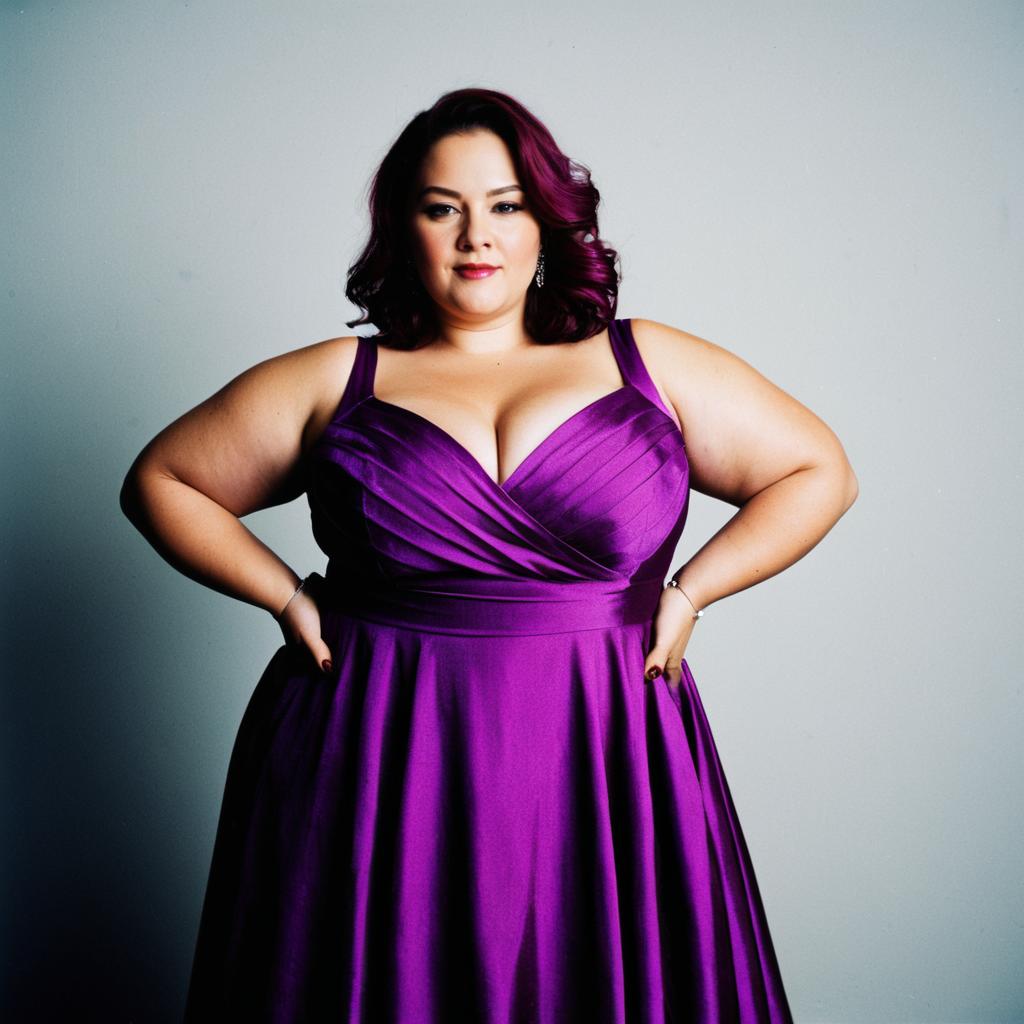 Plus Size Woman in Elegant Purple Dress Posing Confidently