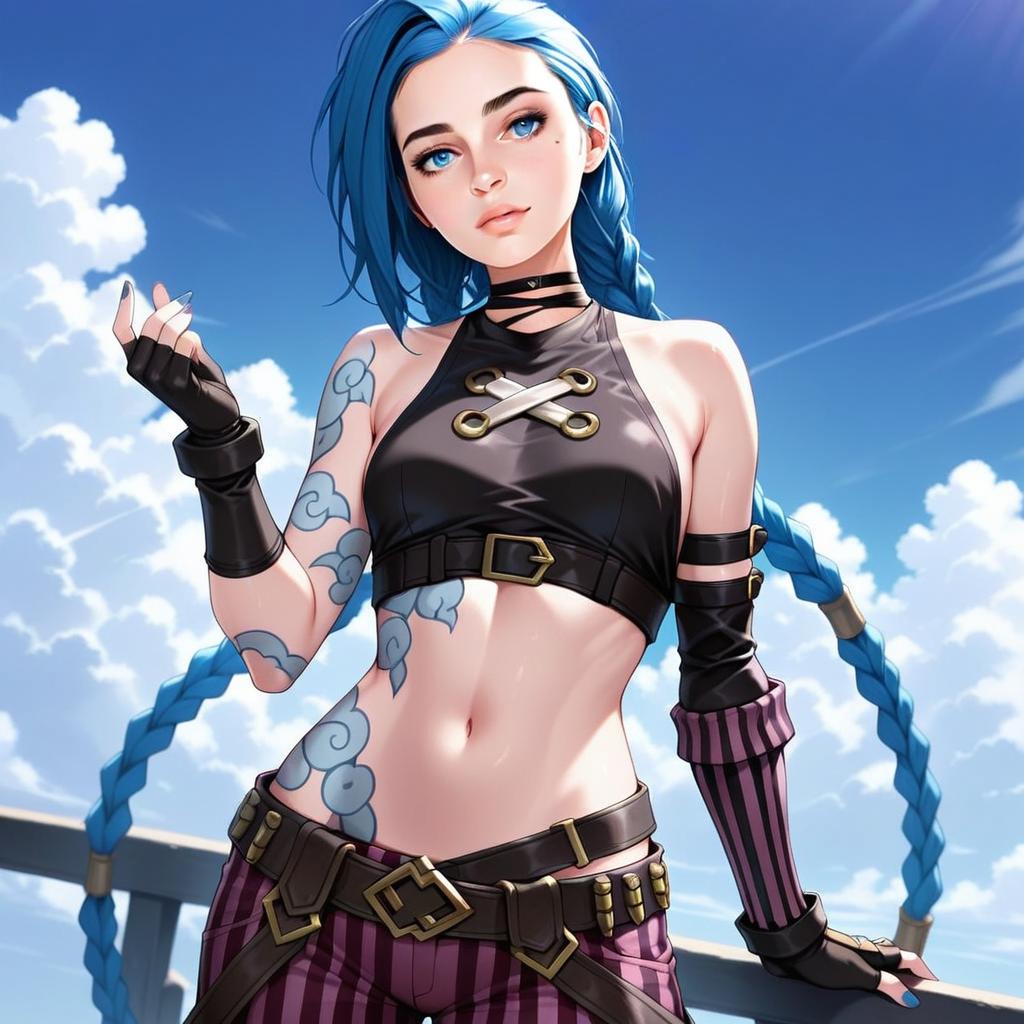 Arcane Jinx Digital Anime Artwork Featuring Blue-Haired Woman