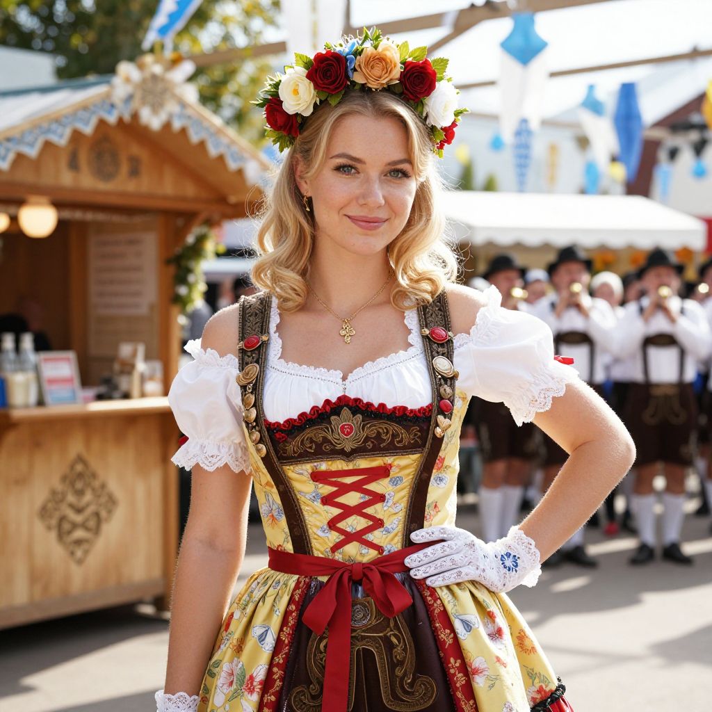Bavarian Woman in Traditional Dirndl at Outdoor Festival