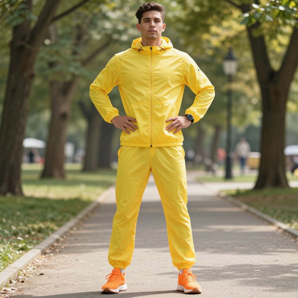 Man in Bright Yellow Tracksuit Standing on Park Pathway