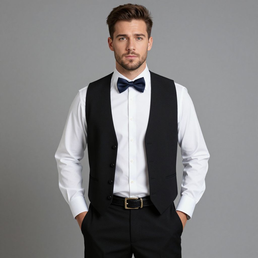 Young Man in Classic Formal Wear with Black Vest and Bow Tie