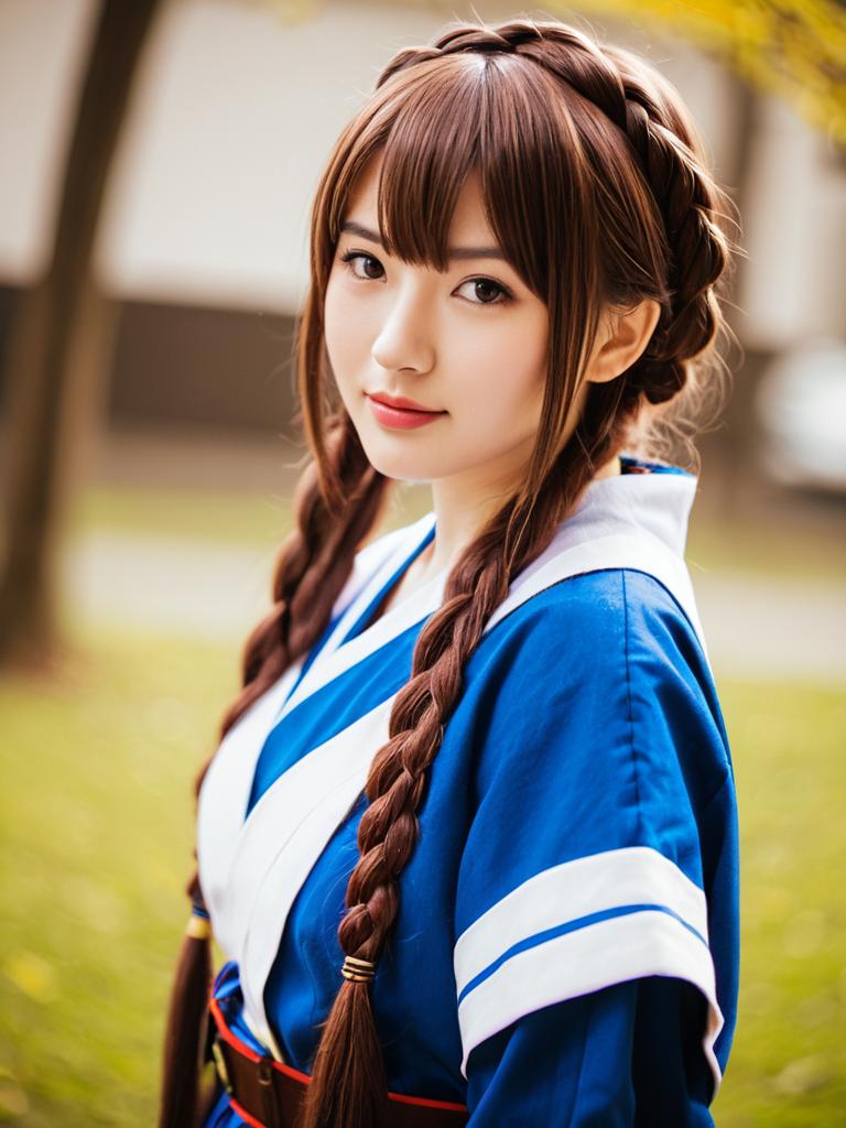 Arika Yumemiya Cosplay Portrait in Blue Traditional Anime Outfit
