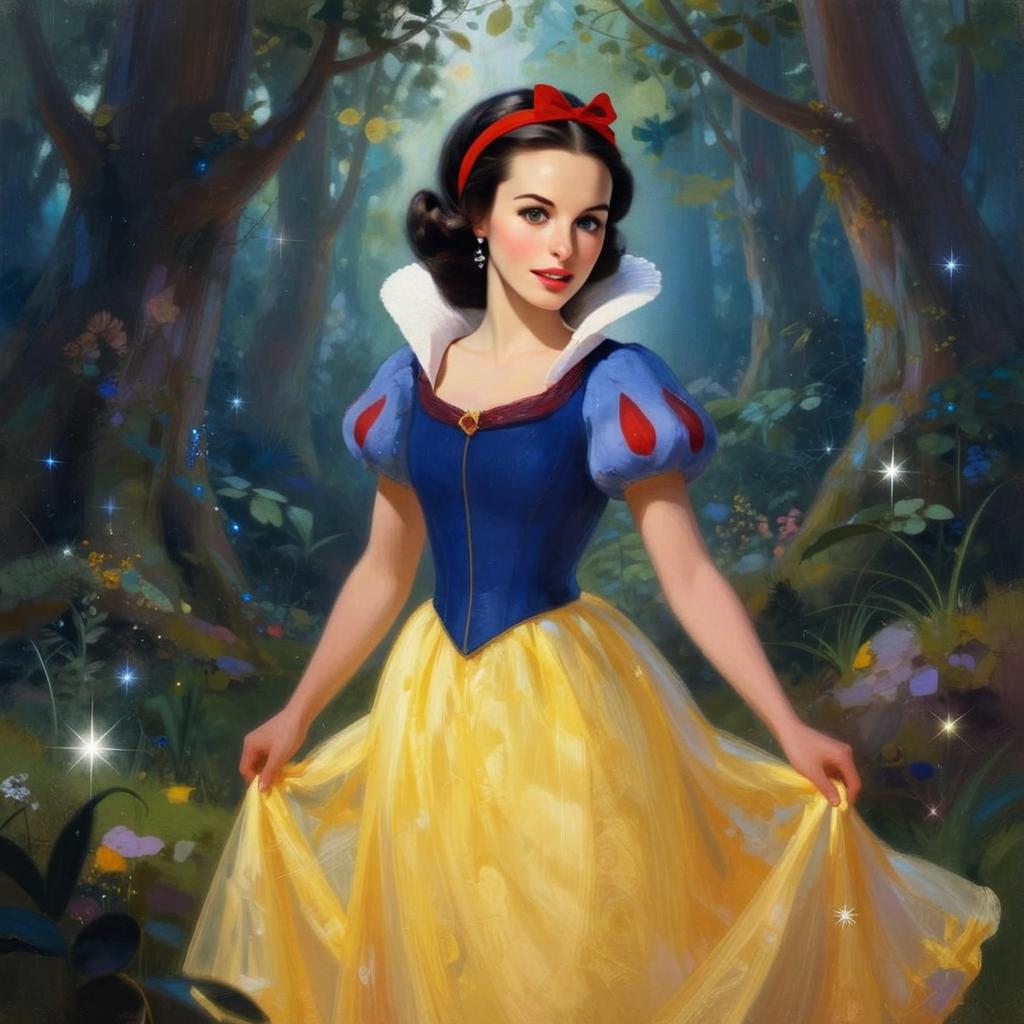 Enchanting Snow White Woman in Classic Costume Digital Illustration