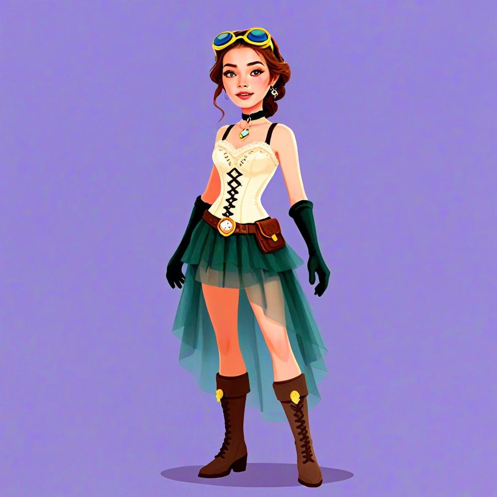 Steampunk Woman in Corset Outfit with Goggles and Layered Skirt