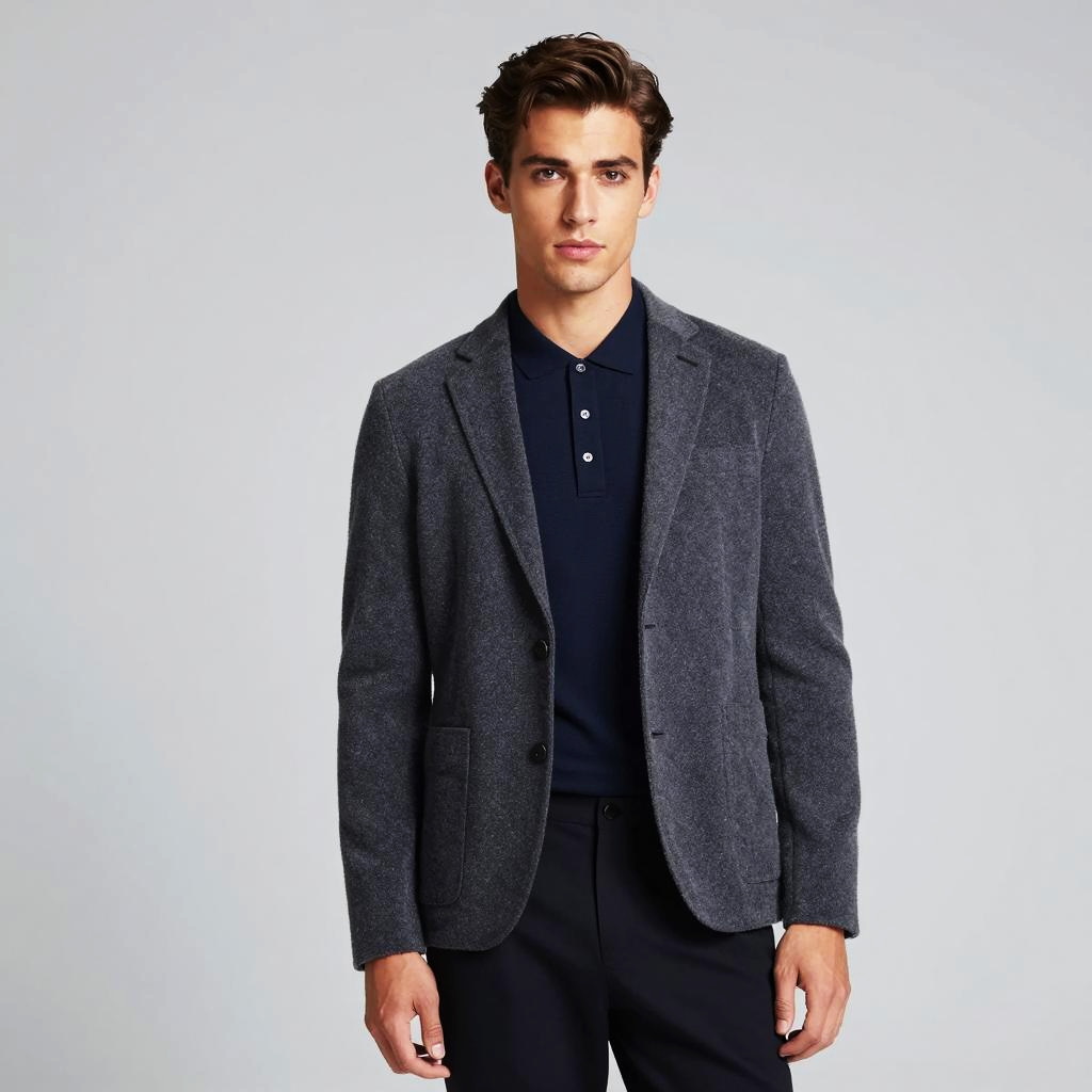 Gen Z Man in Charcoal Blazer and Navy Polo Shirt