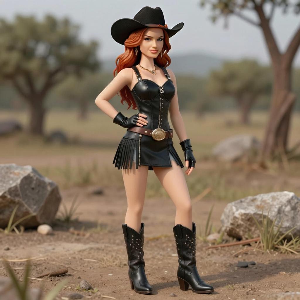 Confident Woman in Modern Western Leather Outfit and Cowboy Hat