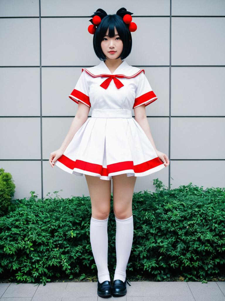 Tsukihi Araragi Cosplay in White and Red Sailor Outfit